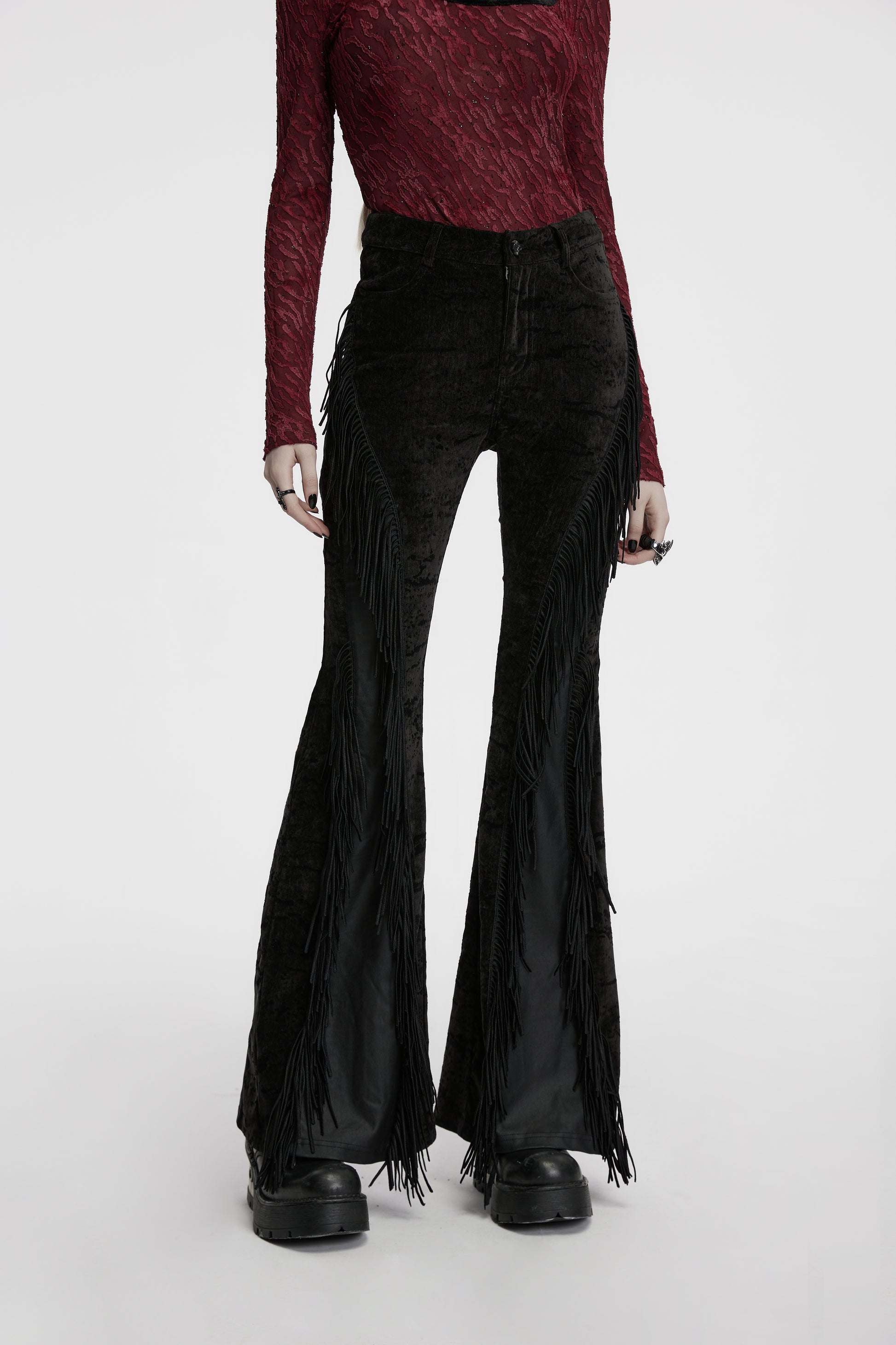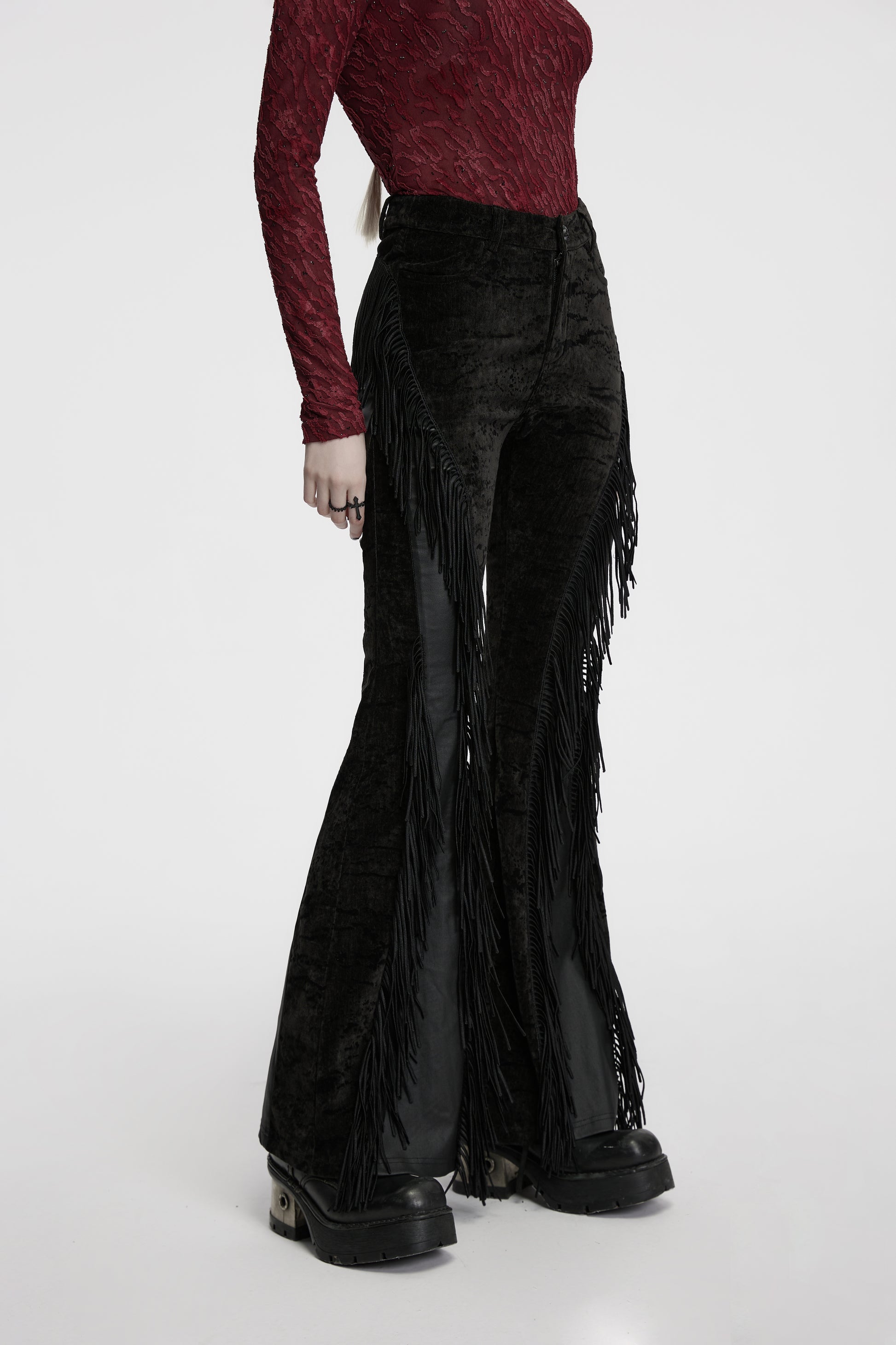 Punk Rave Morrigan Wasteland Tassel Flare Goth Pants In Black