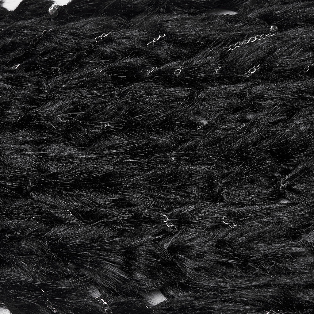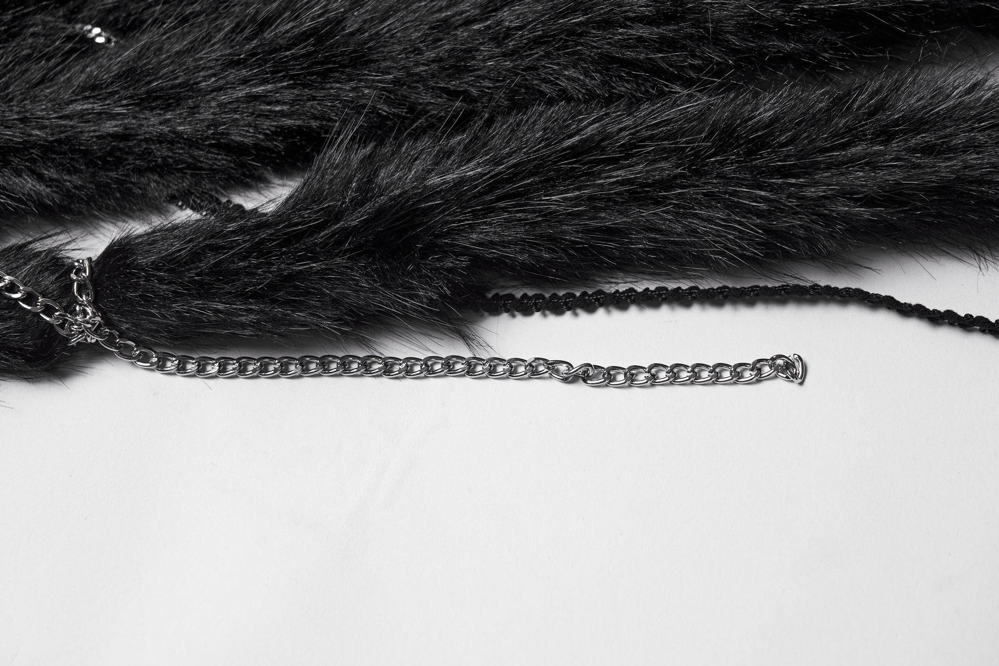 Faux fur hood with exaggerated length and multiple braided strands