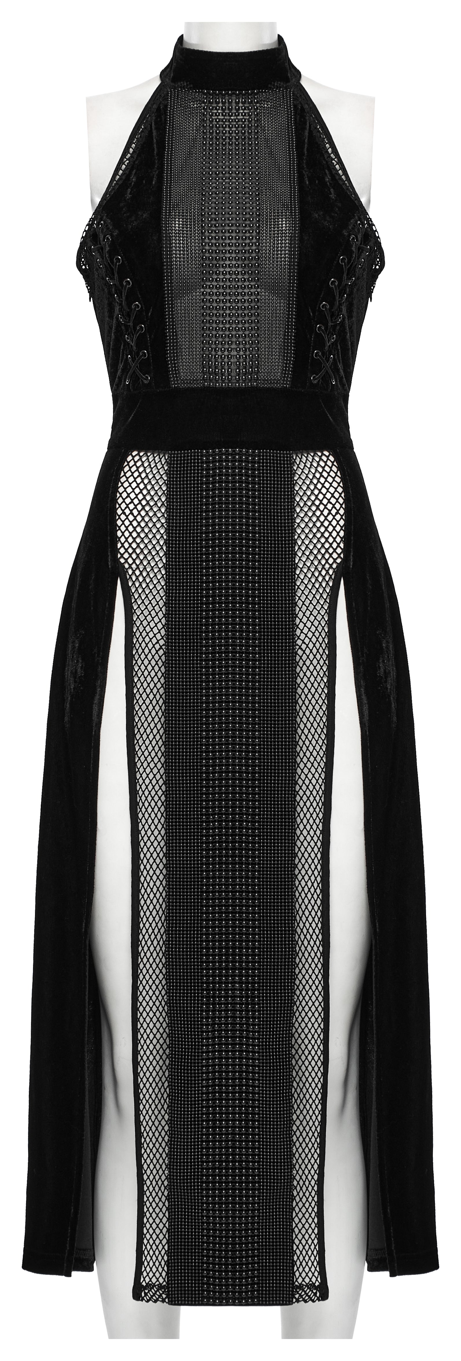 Punk Rave Selene Velvet Mesh High Slit Goth Dress In Black