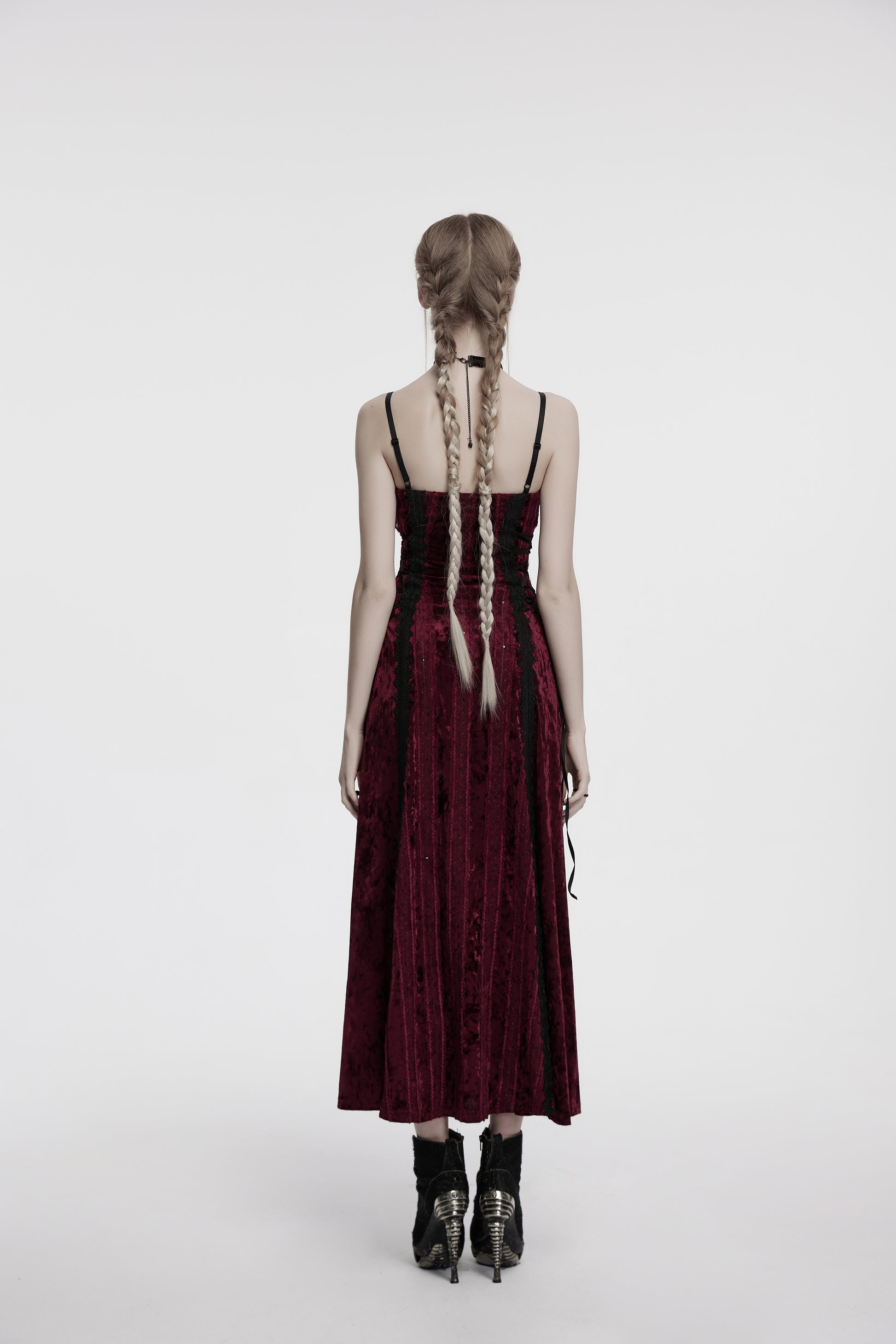 Punk Rave Vivienne Velvet Lace Panel Goth Slip Dress In Burgundy