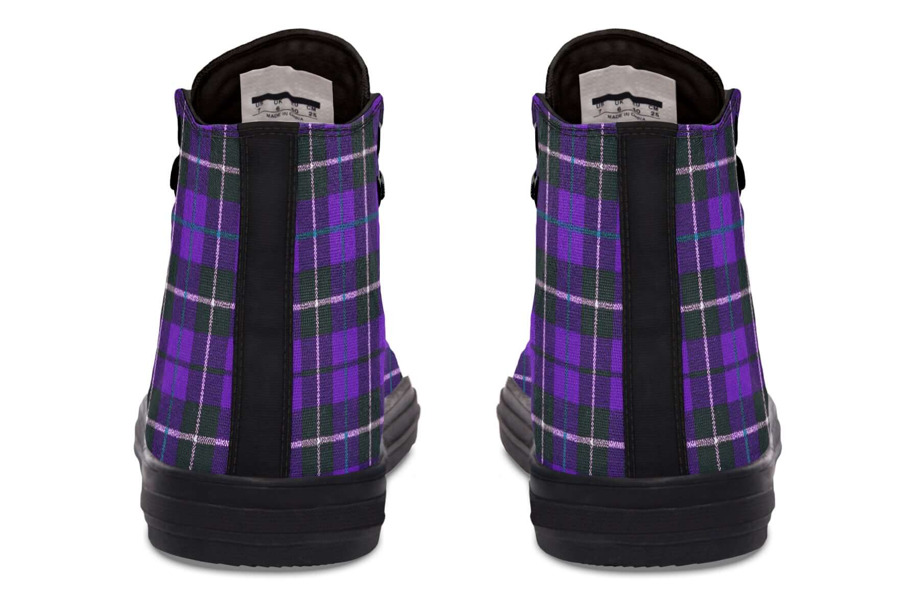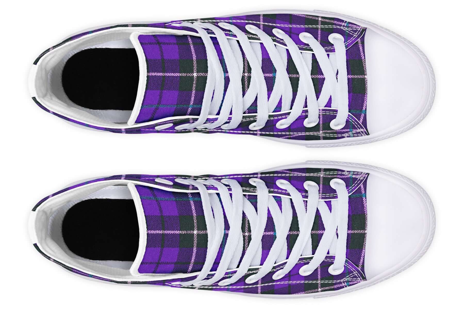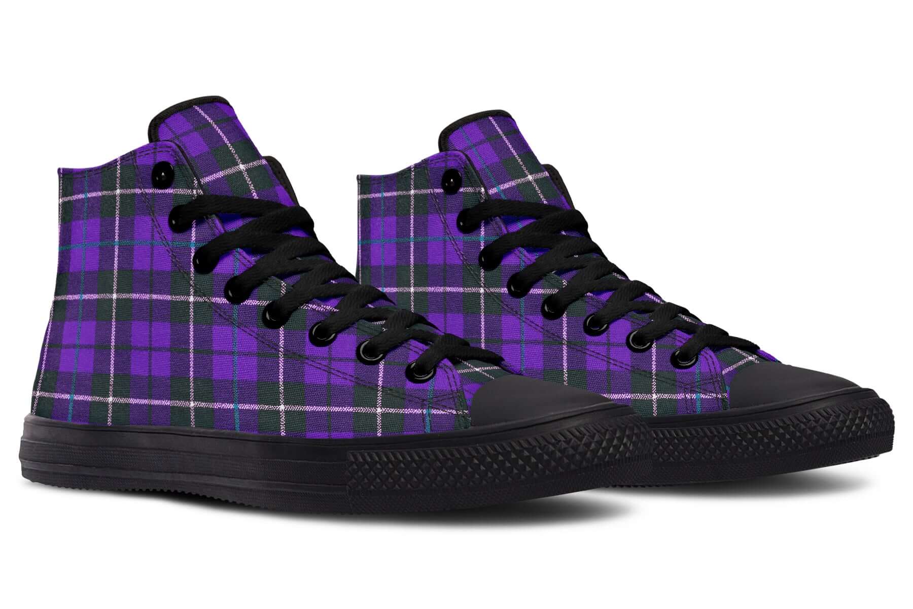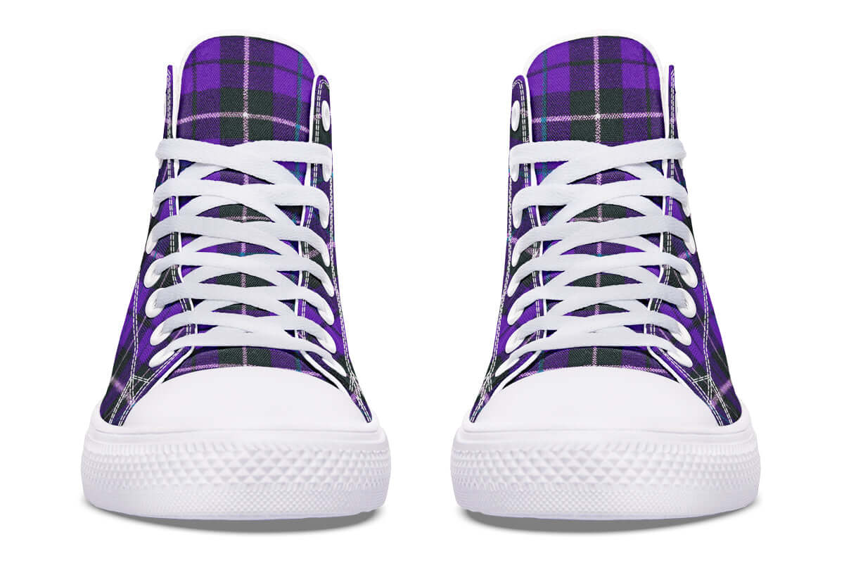 Step up your punk game with the Purple Tartan High Tops by ANTIBrand. Featuring a bold violet and green tartan pattern, these statement trainers fuse classic punk roots with contemporary alt style. Made for stomping the streets with attitude.