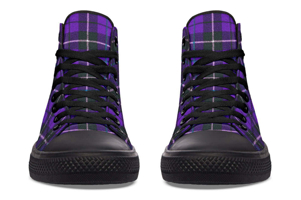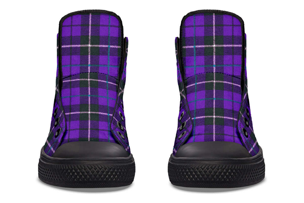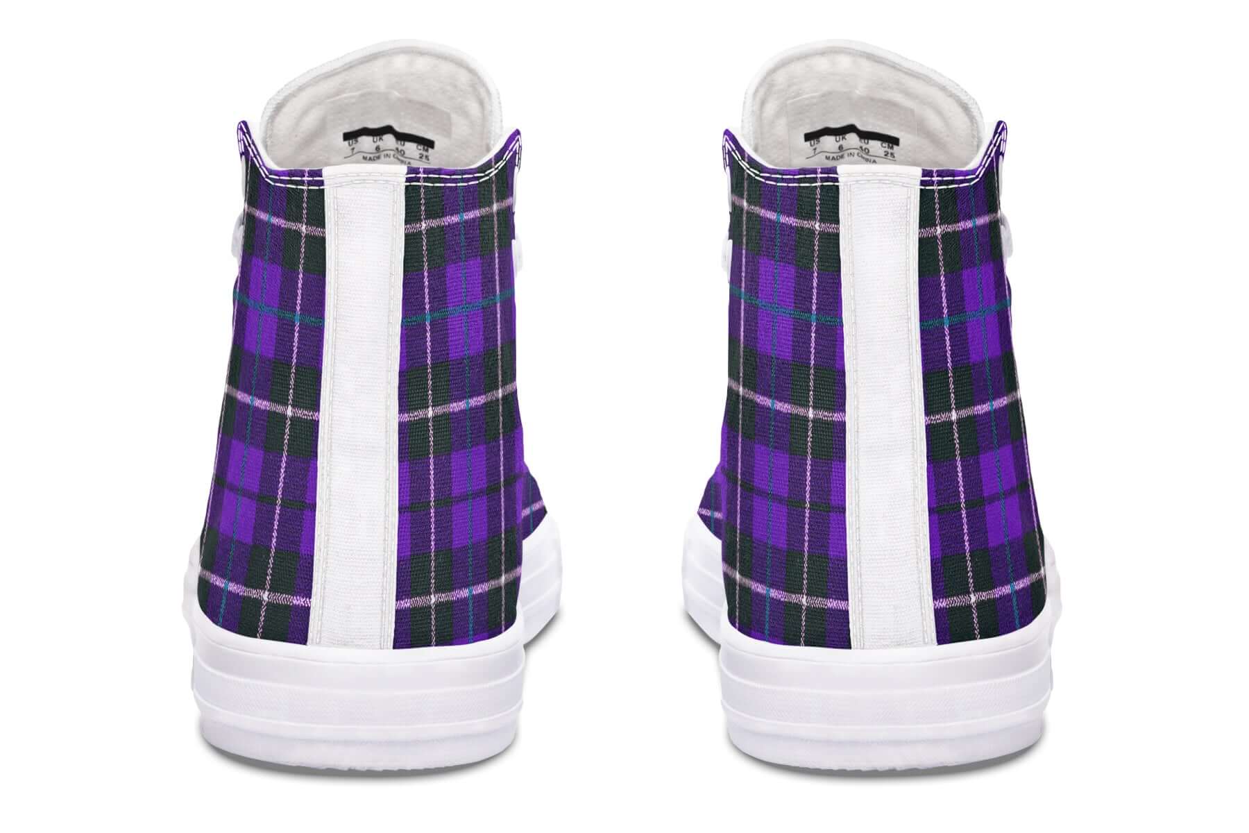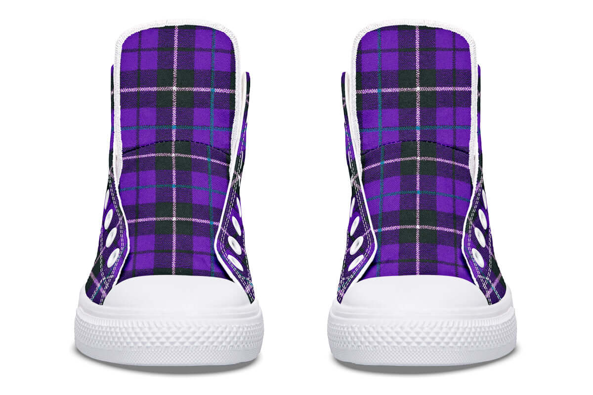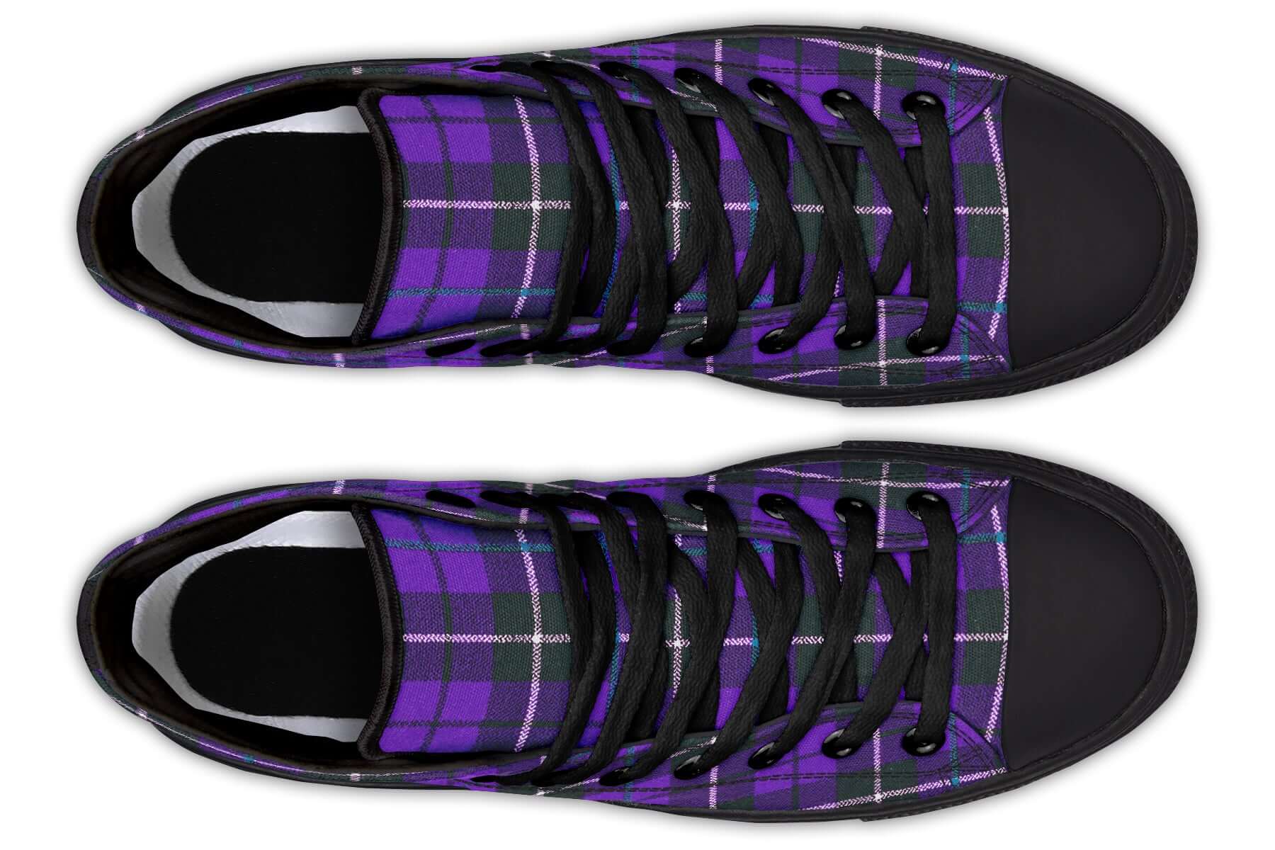 Step up your punk game with the Purple Tartan High Tops by ANTIBrand. Featuring a bold violet and green tartan pattern, these statement trainers fuse classic punk roots with contemporary alt style. Made for stomping the streets with attitude.