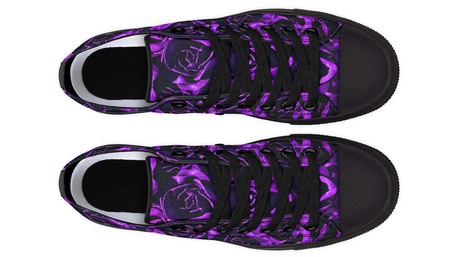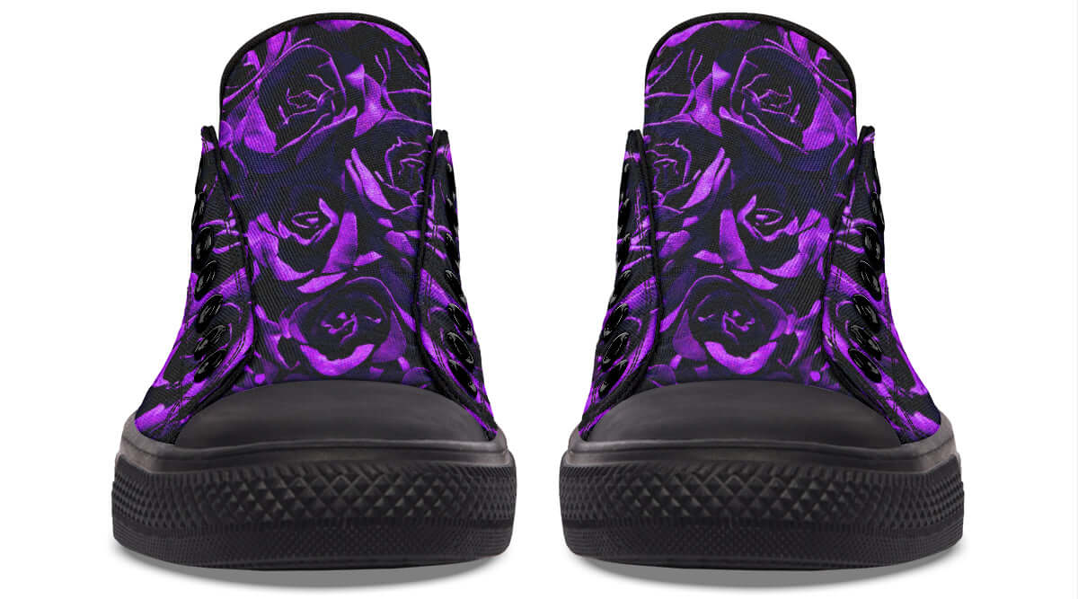 Step into a floral fantasy with the Purple Roses Canvas Low Tops from ANTIBrand. These trainers blend gothic charm with street-ready comfort, covered in a deep purple rose print set against a black background for maximum drama.