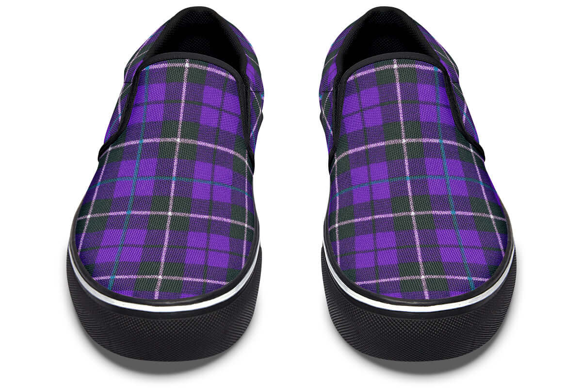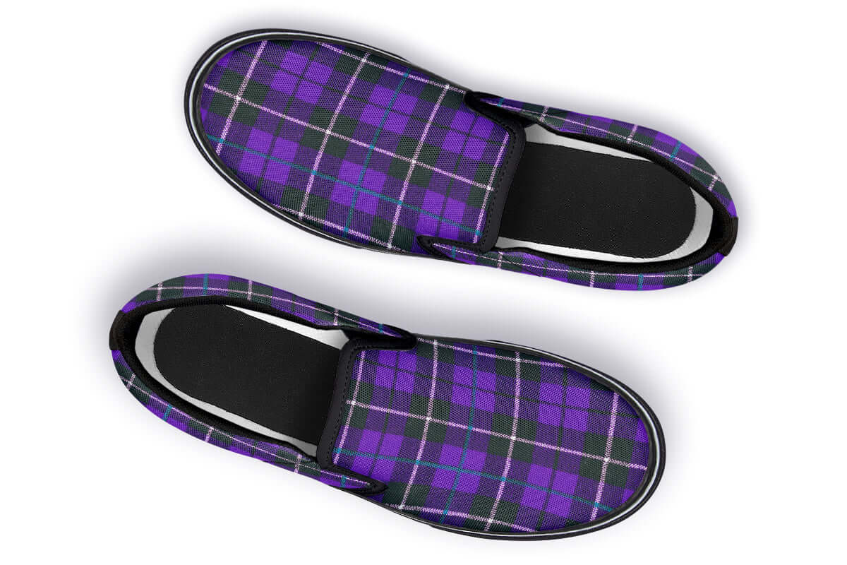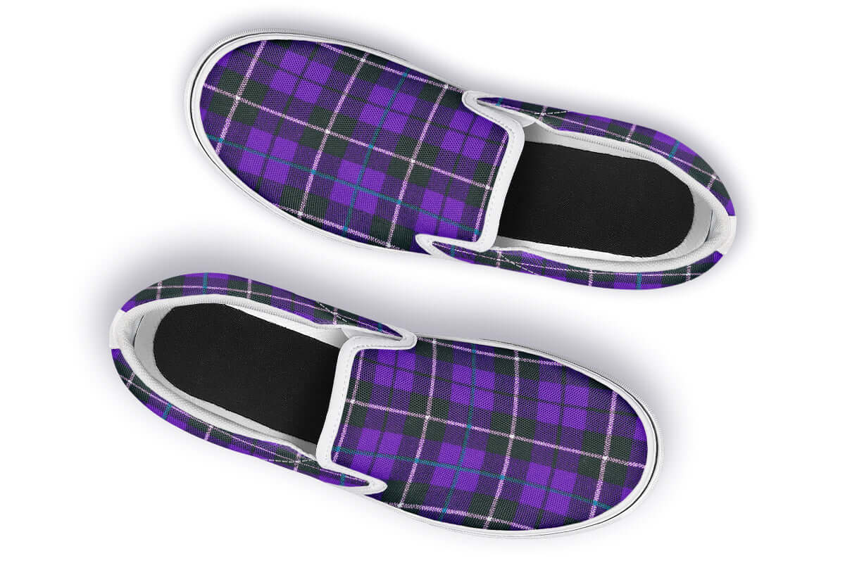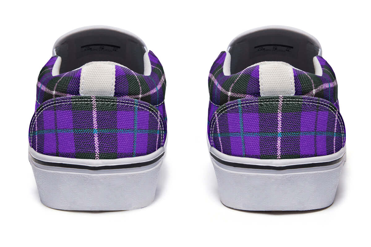Channel punk-inspired vibes with the Purple Tartan Canvas Slip-On Trainers from ANTIBrand. Featuring a vivid purple and black plaid design, these slip-ons deliver effortless style with a rebellious edge. Ideal for everyday wear or elevating your alternative wardrobe.