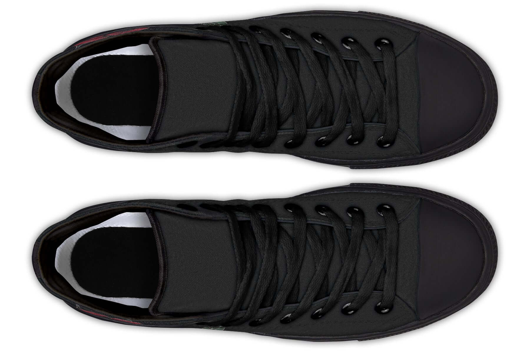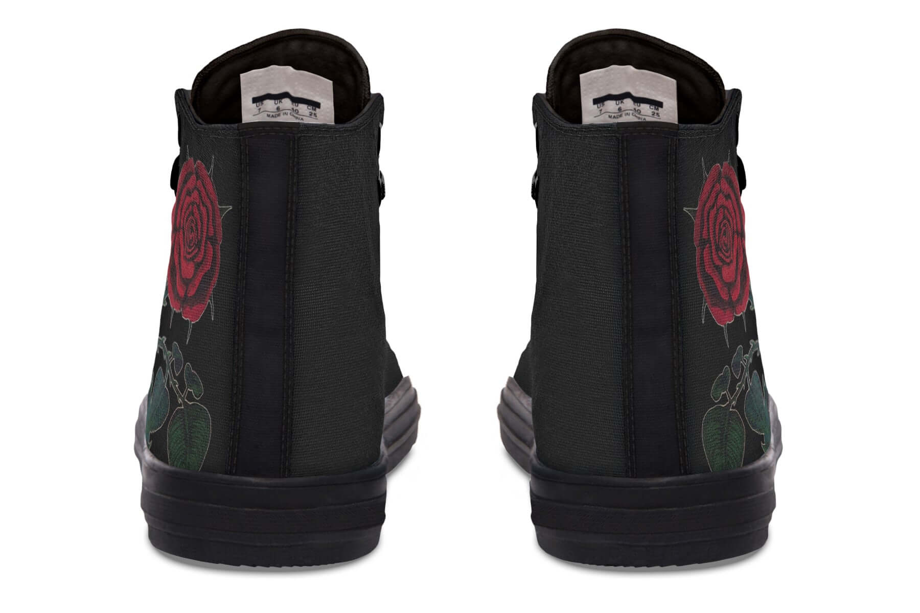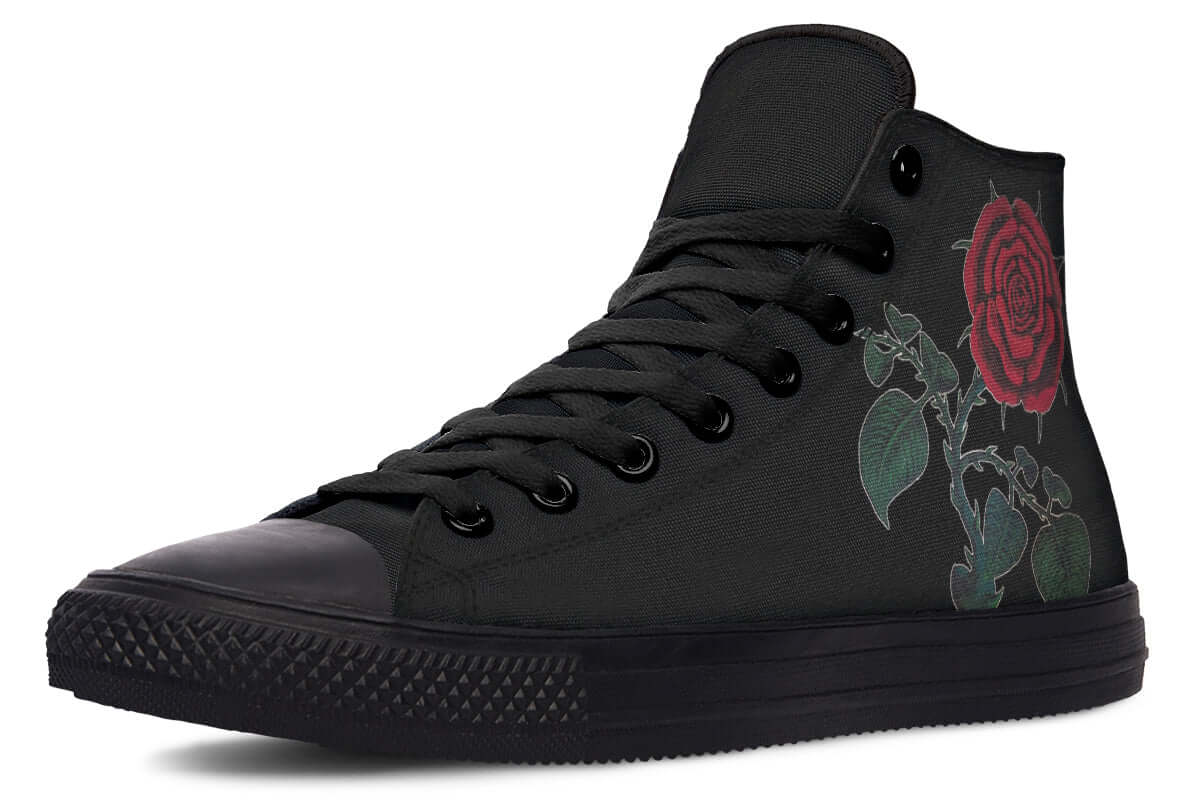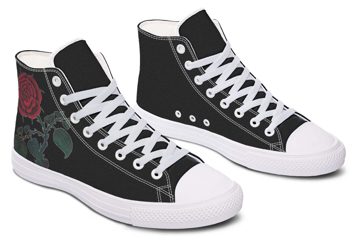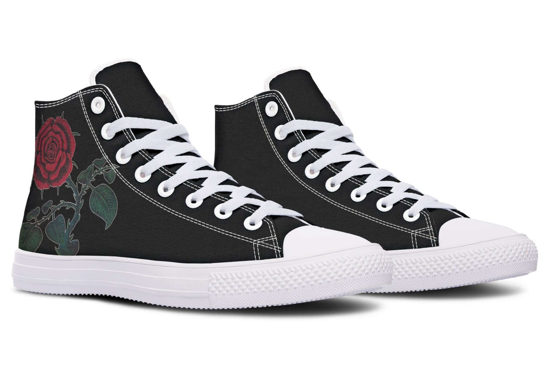 Express your dark romantic side with the Rose Painting High-Top Trainers by ANTIBrand. Featuring a single detailed red rose on a sleek black canvas, these gothic-inspired high-tops bring artistic flair to your alternative wardrobe.