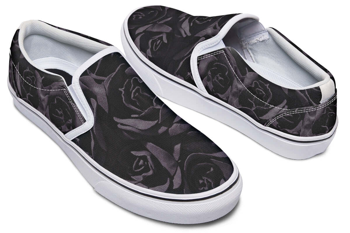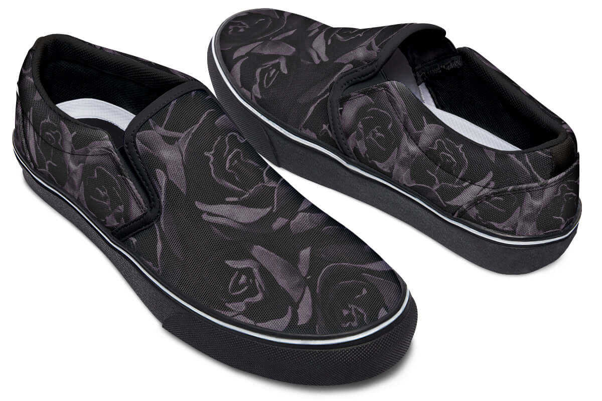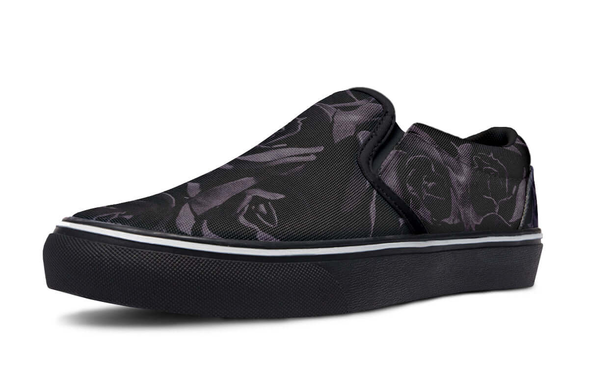 These Blackest Roses Slip-On Shoes blend laid-back comfort with moody romanticism. Featuring Kate’s black-on-black rose artwork, these gothic slip-ons are subtle yet striking — perfect for casual days with a dark twist.