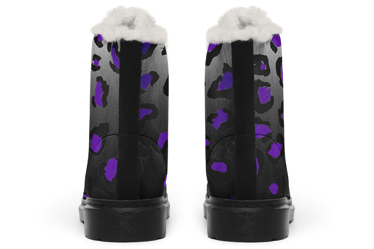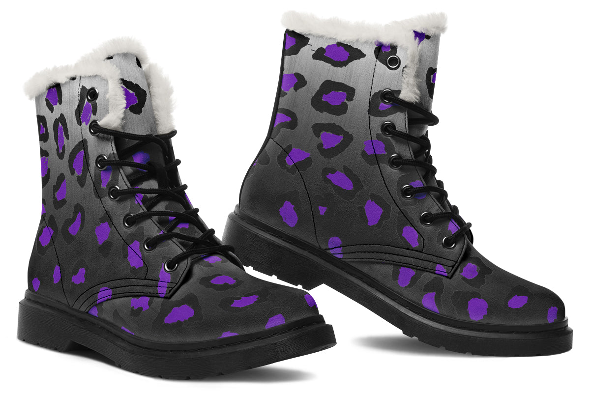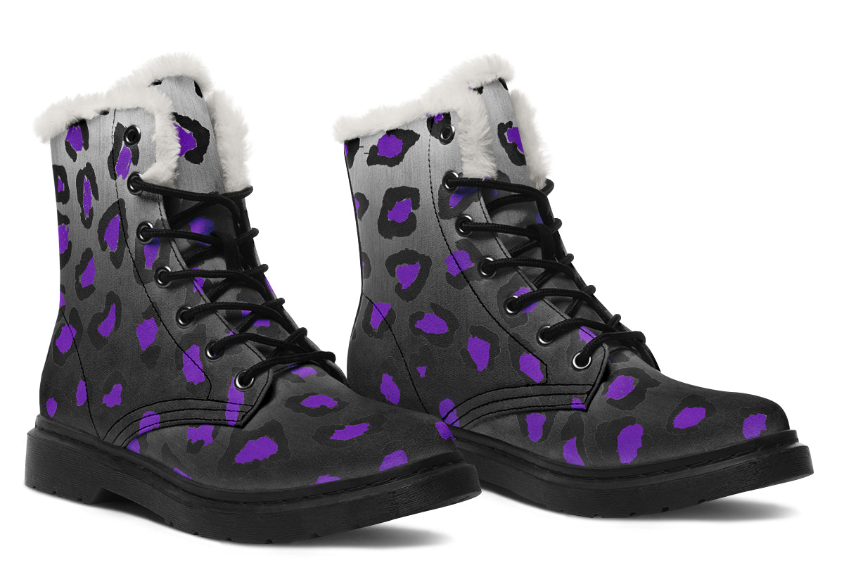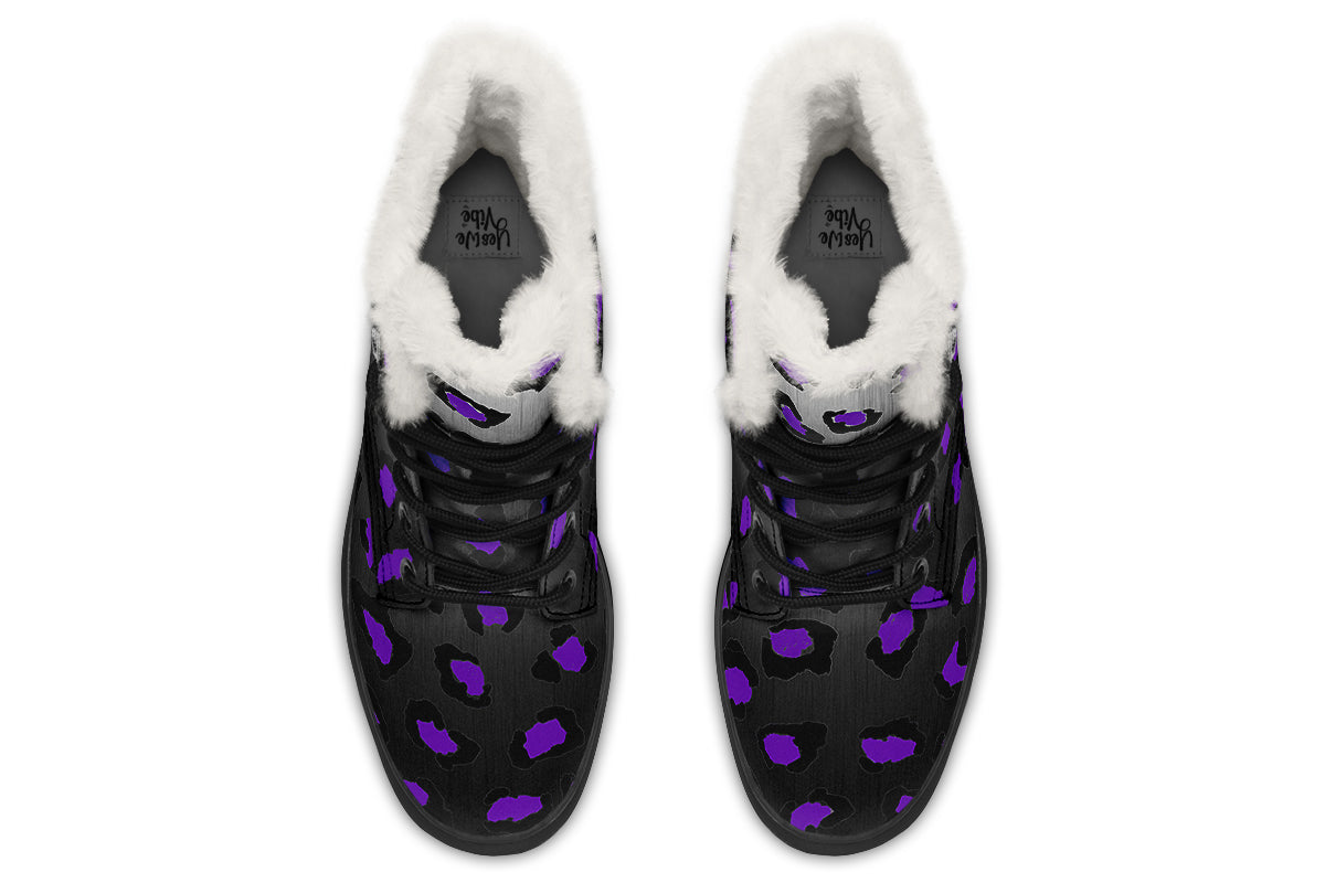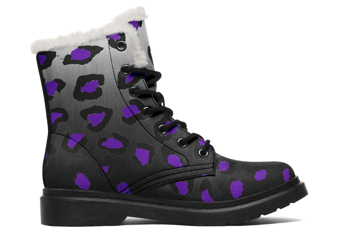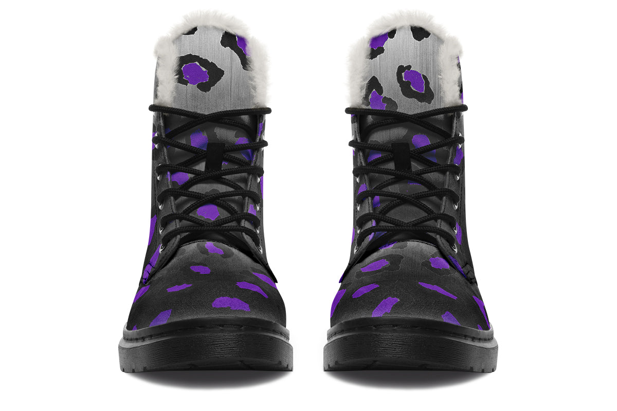 Unleash your wild side with the ANTIBrand Panther of Steel Fleece Lined Boots – Black/Purple. Featuring a bold purple leopard print over black faux suede, these boots combine fierce design with everyday comfort. Faux fur lining and insole keep you warm, while the steel-shank rubber outsole adds durability and support.