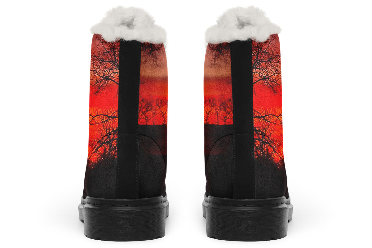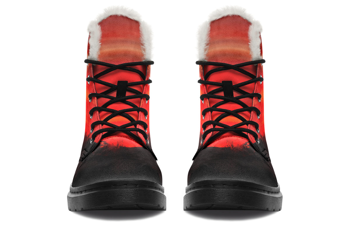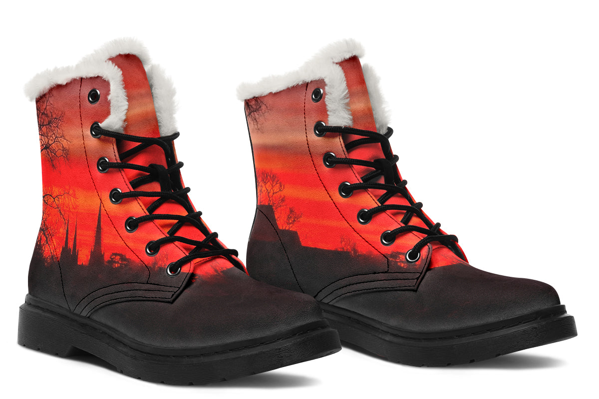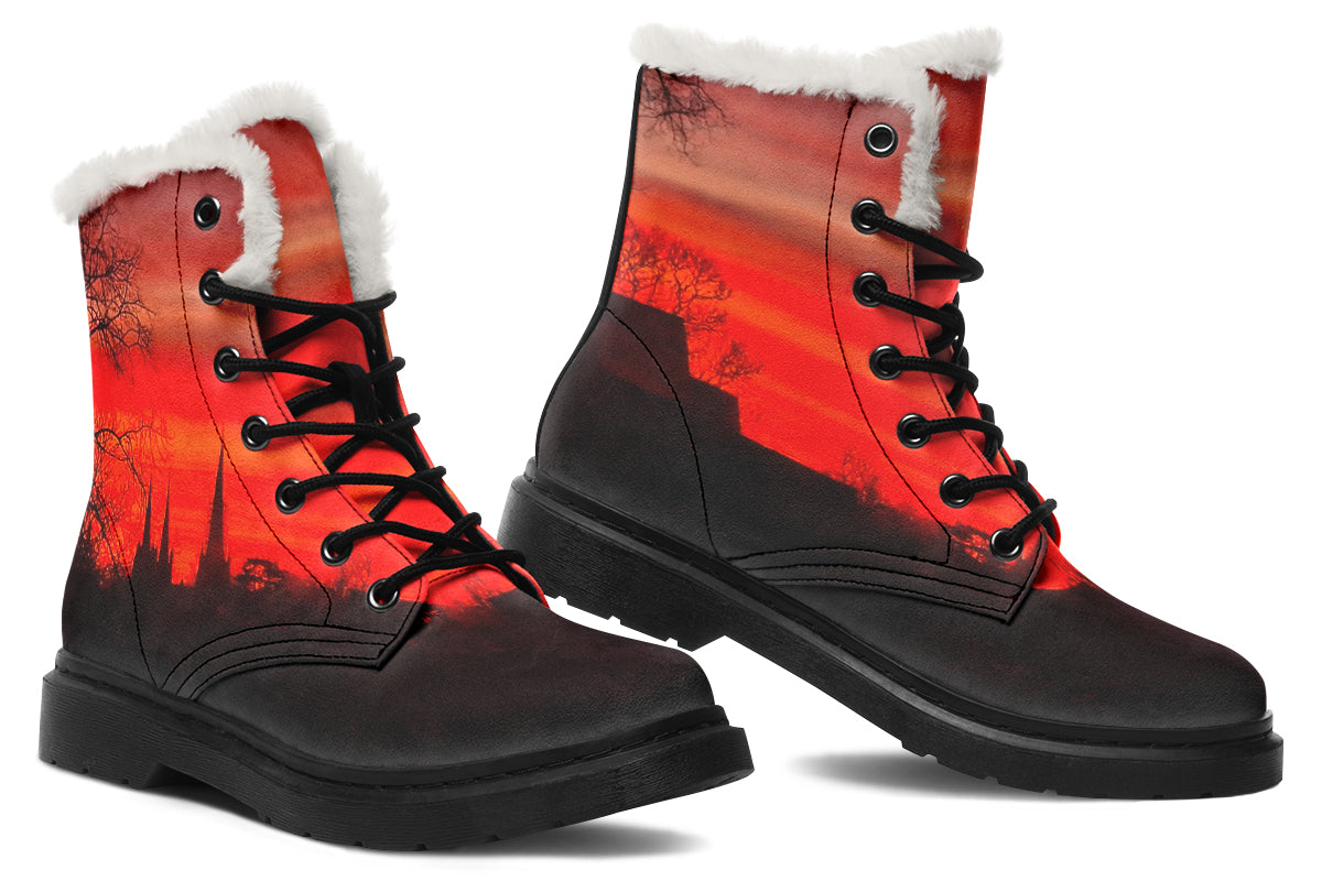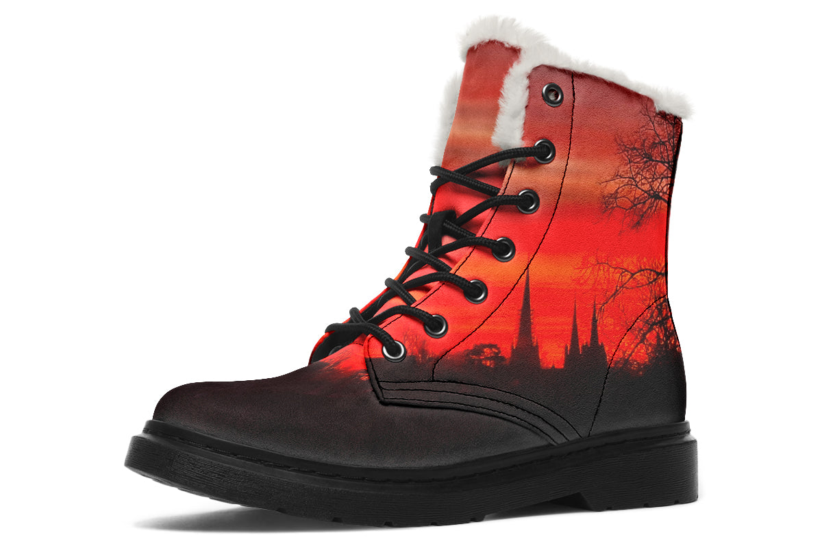 The ANTIBrand The Ember Hour Fleece Lined Boots capture the magic of twilight with a fiery sunset design. Black silhouettes of gothic spires cut across the glowing sky, creating a dramatic effect. Perfect for those who crave dark romanticism with a splash of colour. Warm fleece lining ensures comfort through chilly nights, while the rugged outsole provides long-lasting wear.