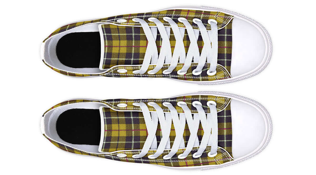 Bring a touch of punk rebellion to your step with these Yellow Tartan Canvas Low Top Trainers by ANTIBrand. The classic yellow tartan pattern is a nod to 90s grunge and alternative style, made fresh with a sleek low-top silhouette.